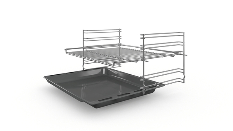 - Backofeninnenraum mit Einhängegittern. Teleskopauszug nachrüstbar