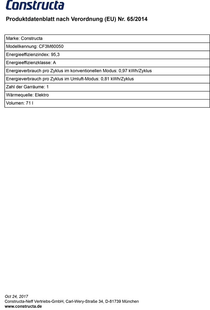Der Constructa CF 3M 60050 verfügt u.a. über 7 Heizarten, Schnellaufheizung und eine Vollglas-Innentür.