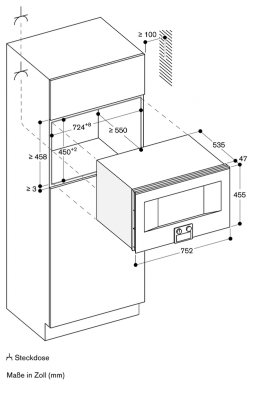- Frontüberstand, ggf. inkl. Türgriff, für die Öffnung von seitlichen Schubladen beachten