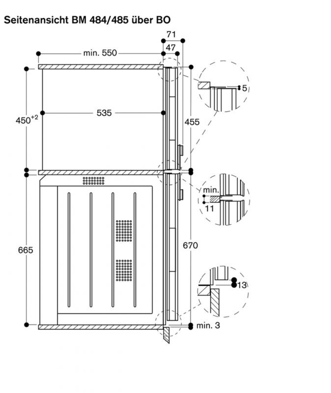 - Abstand Möbelkorpus bis Türfrontfläche 47 mm