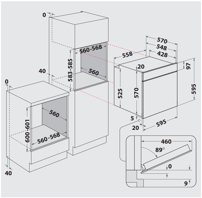 - Nischenmaße (HxBxT): 600x560x560 mm