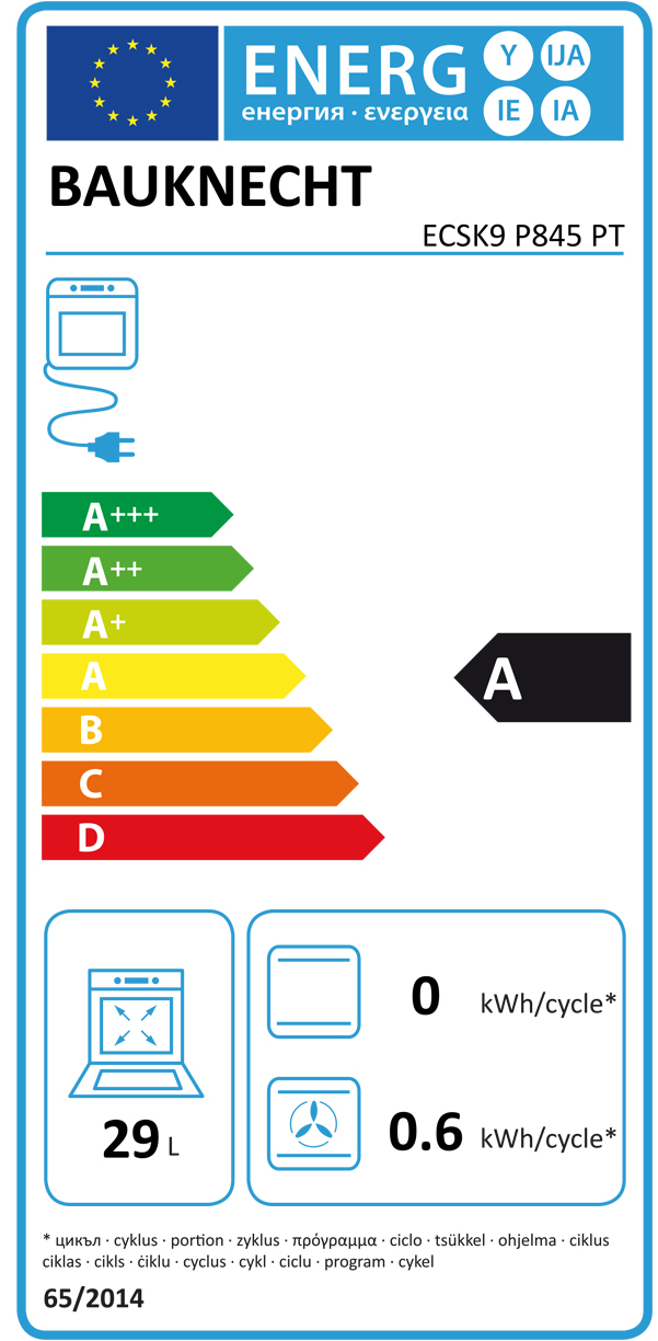 • Energieverbrauch nach DIN 0.6 kWh Umluft