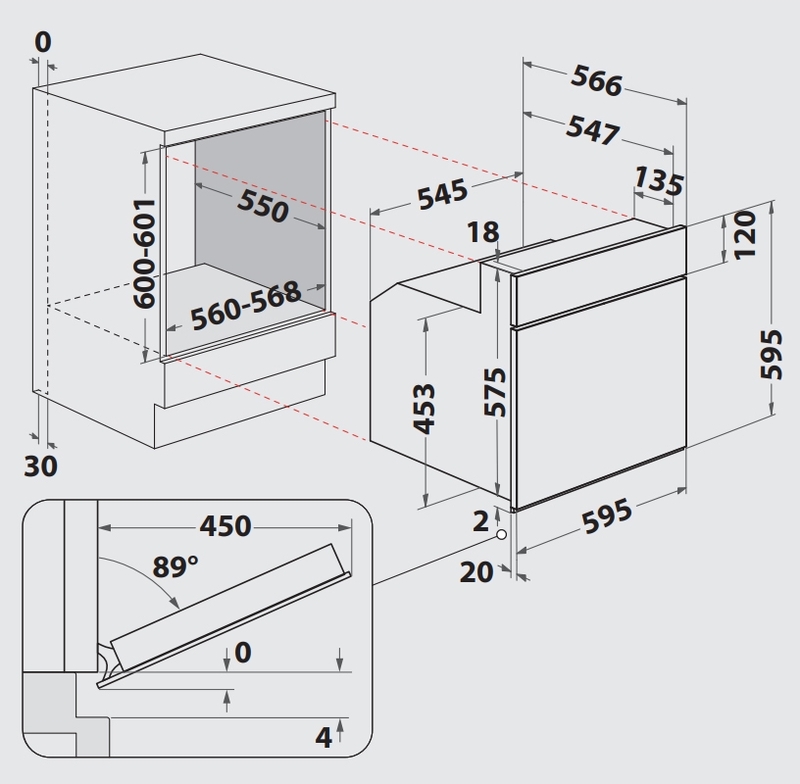 - Nischenmaße (HxBxT): 600x560x550 mm