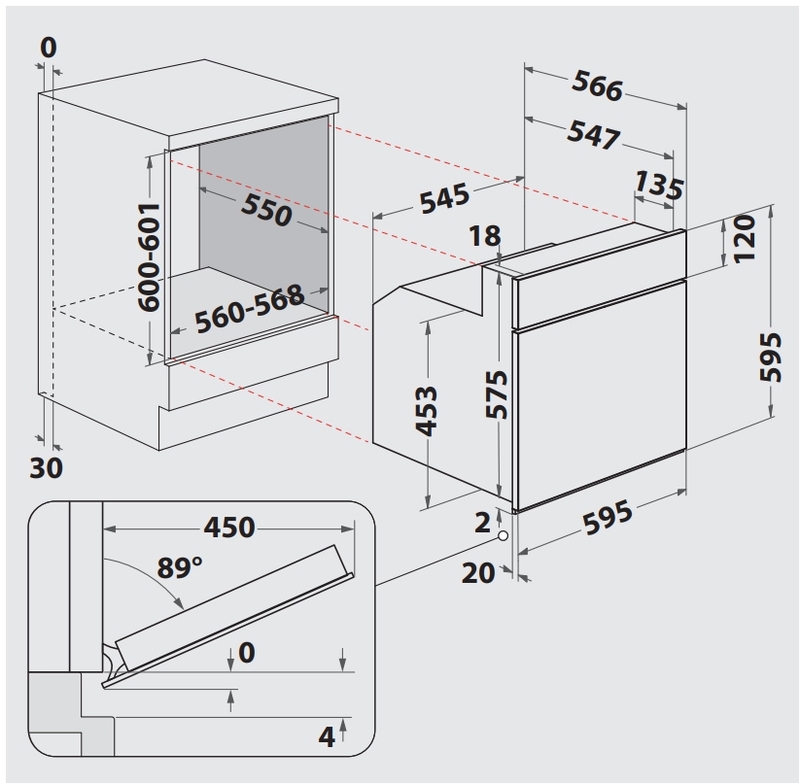 - Nischenmaße (HxBxT): 600x560x550 mm