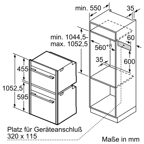 • Durchgehende Design-Lisenen zur nahtlosen Kombination eines Slide&Hide®-Backofens mit einem Kompakt -Backofen + Zwischenboden zur Kombi nation von zwei Backöfen
