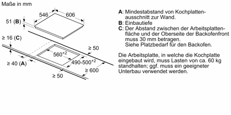 • Nischenmaße (HxBxT): 595 mm x 560 mm x 550 mm