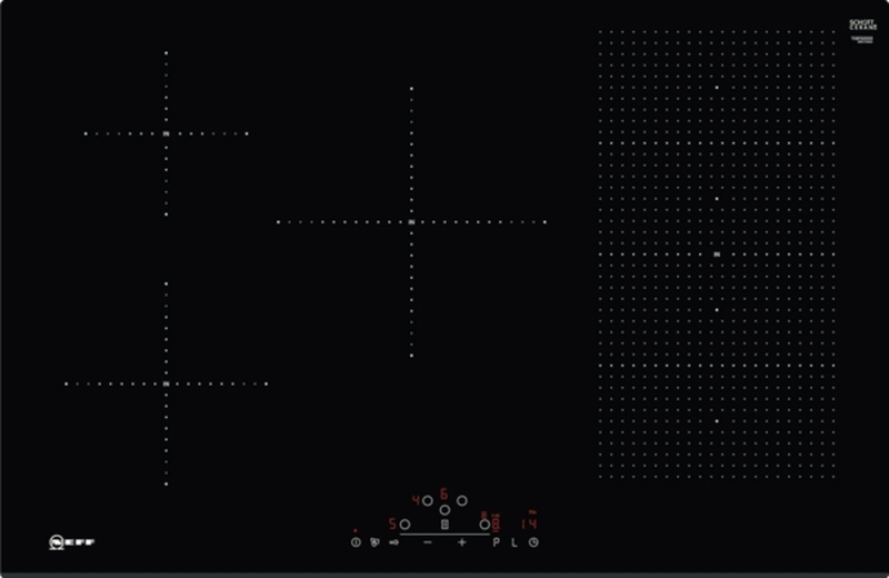 • Flexzone: Verwenden Sie Kochgeschirr beliebiger Form und Größe innerhalb der 40 cm langen Zone.