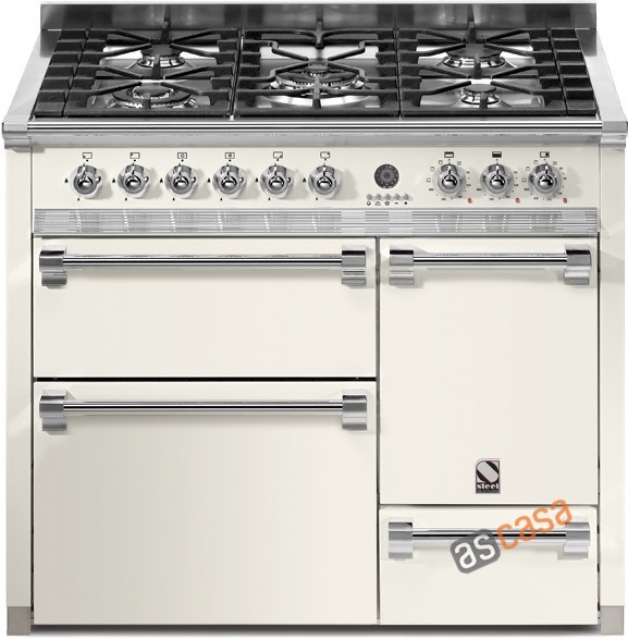 Steel Ascot 100, Rangecooker, Farbe Nuvola, 100 cm, Multifunktions-Backofen, 5 Gasbrenner, 3 Öfen, A10FFF-D-4MNA, mit 5 Jahren Garantie!
