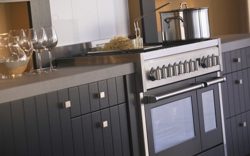 Elektronischer Ofen mit Kurzzeitwecker, Programmierung der Gar- und Backzeiten, mit dreifacher Verglasung für eine "kalte" Ofentüre und somit mehr Sicherheit und weniger Energieverlust.