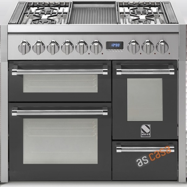 Steel Genesi 100, Rangecooker, Farbe Anthrazit, 100 cm, Multifunktions-Backofen, 3 Öfen, 5 Induktions Kochzonen, G10FFF-6LAN, mit 5 Jahren Garantie!