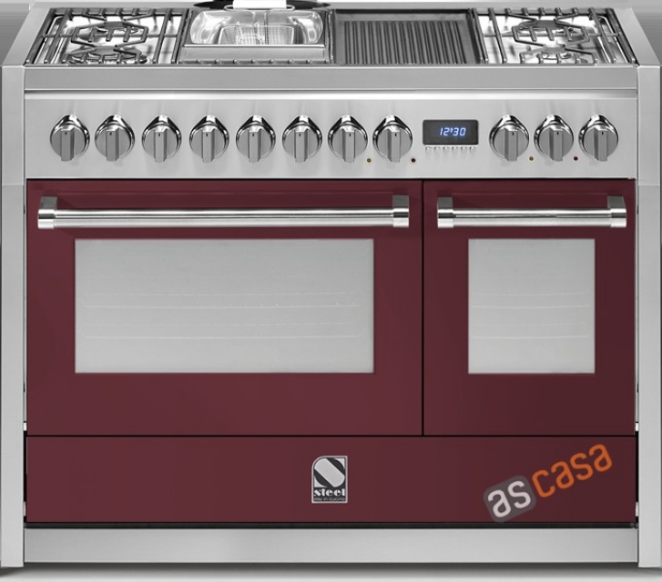 Steel Genesi 120, Rangecooker, Farbe Bordeauxrot, 120 cm, Multifunktions-Backofen, 6 Gasbrenner, G12FF-6GBR, mit 5 Jahren Garantie!