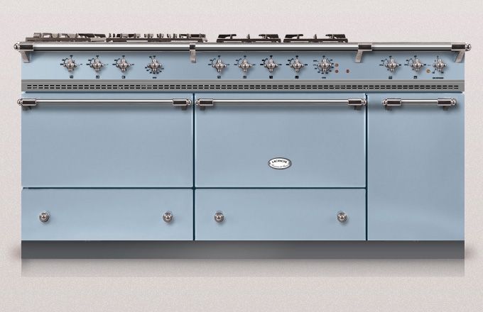 Lacanche Sully 1800-D Classic, Rangecooker, Farbe Bleudelft, 180,5 cm, individuelle Gestaltung von Kochfeldern, Gasbrennern, Backofen und Ausführung der Beschläge, mit 5 Jahren Garantie!