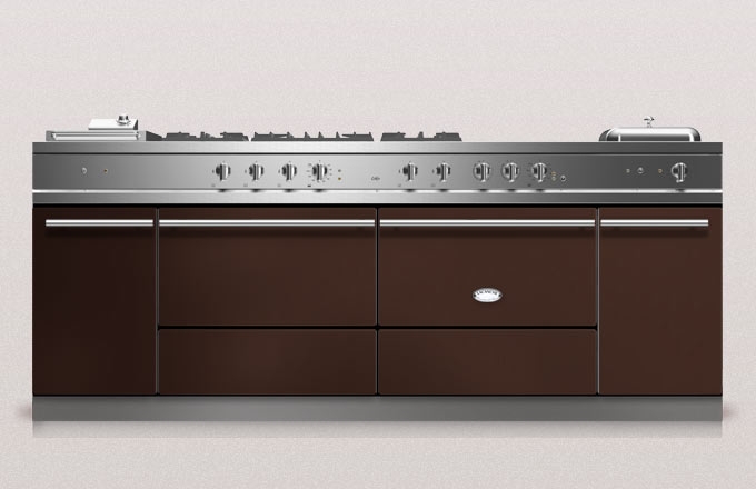 Lacanche Sully 2200 Modern, Rangecooker, Farbe Chocolat, 220,5 cm, individuelle Gestaltung von Kochfeldern, Gasbrennern, Backofen und Ausführung der Beschläge, mit 5 Jahren Garantie!