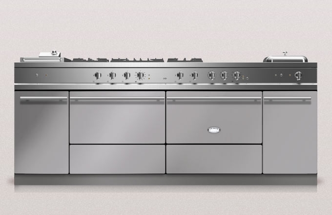 Lacanche Sully 2200 Modern, Rangecooker, Farbe Inox, 220,5 cm, individuelle Gestaltung von Kochfeldern, Gasbrennern, Backofen und Ausführung der Beschläge, mit 5 Jahren Garantie!