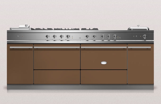 Lacanche Sully 2200 Modern, Rangecooker, Farbe Marronglace, 220,5 cm, individuelle Gestaltung von Kochfeldern, Gasbrennern, Backofen und Ausführung der Beschläge, mit 5 Jahren Garantie!