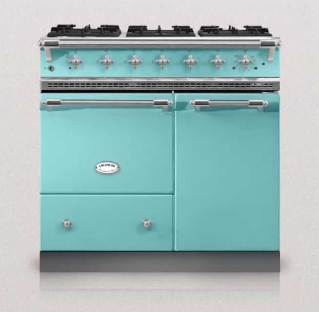 Lacanche Beaune Classic, Rangecooker, Farbe Korallblau, 90 cm, individuelle Gestaltung von Kochfeldern, Gasbrennern, Backofen und Ausführung der Beschläge, mit 5 Jahren Garantie!