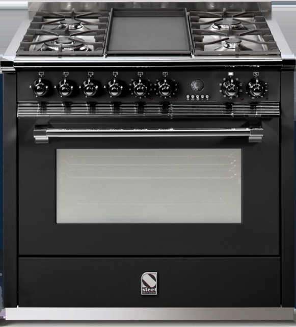 Steel Ascot 90, Rangecooker, Farbe Schwarz, 90 cm, Multifunktions-Backofen, 4 Gasbrenner, A9F-4BBA, mit 5 Jahren Garantie!