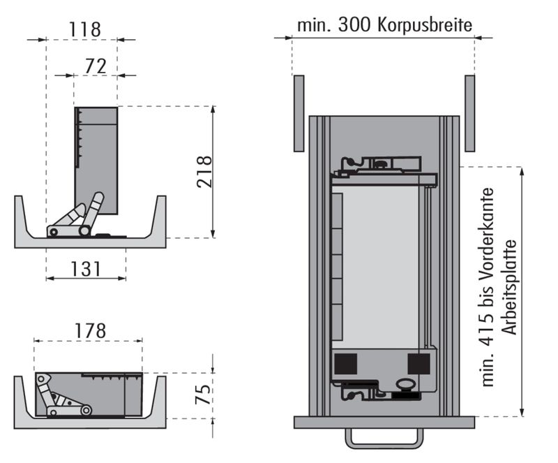 Einbau-Toaster zur Montage in Schubkästen ab 300 mm Korpusbreite. Voraussetzung: lichtes Innenmaß >180 mm.