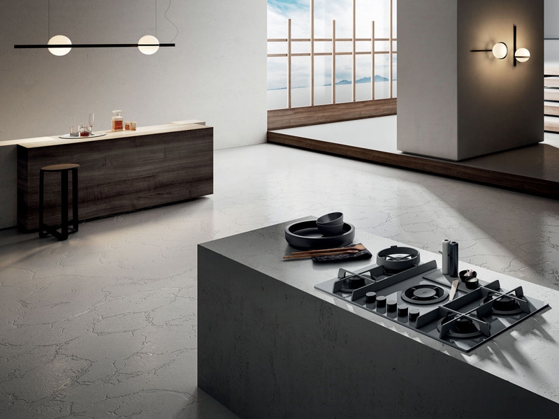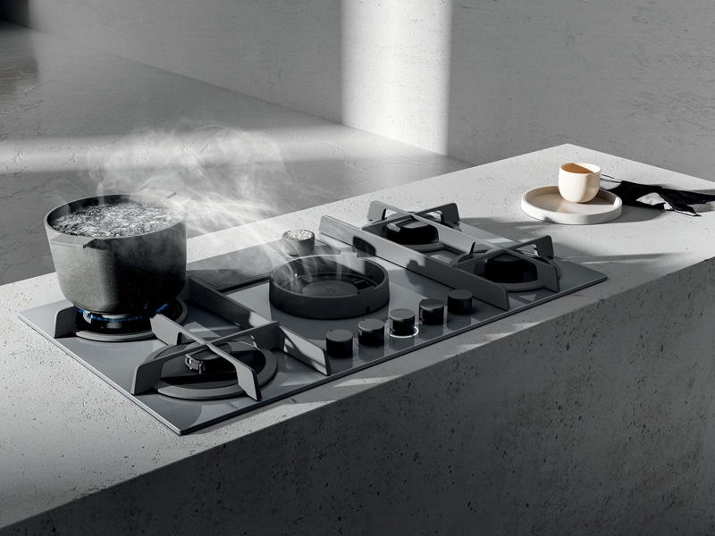 Elica Nikola Tesla Flame GR/F/88 Gas-Kochfeld mit integriertem Dunstabzug, graues Glas und Gusseisen, 88 cm, Umluftbetrieb, 3 Leistungsstufen + 2 I, Rotavio-Bedienung, PRF 0147743A