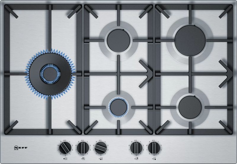 Neff T27DS79N0, Autarkes Gaskochfeld, 75 cm, Edelstahl, 5 Gaskochstellen, Wokbrenner, FlameSelect Technologie, mit 5 Jahren Garantie!