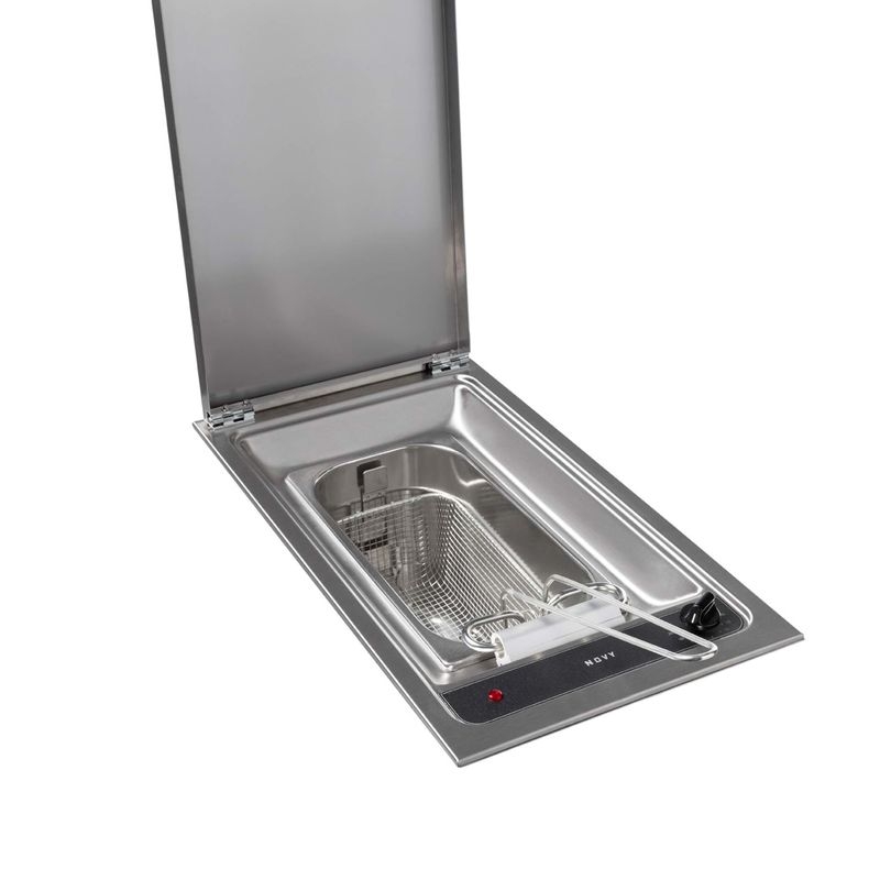 Hierunter versteht man die besonders einfache und schnelle Montage von Novy Deckenhauben und Lüfterbausteinen. Die Dunsthaube wird in den Ausschnitt der Decke bzw. des Schranks gehoben und rastet dabei mit einem Clicken ein. Anschließend müssen für eine feste Montage lediglich die Schrauben der Halteklammern festgedreht werden und das Gerät ist sicher fixiert.