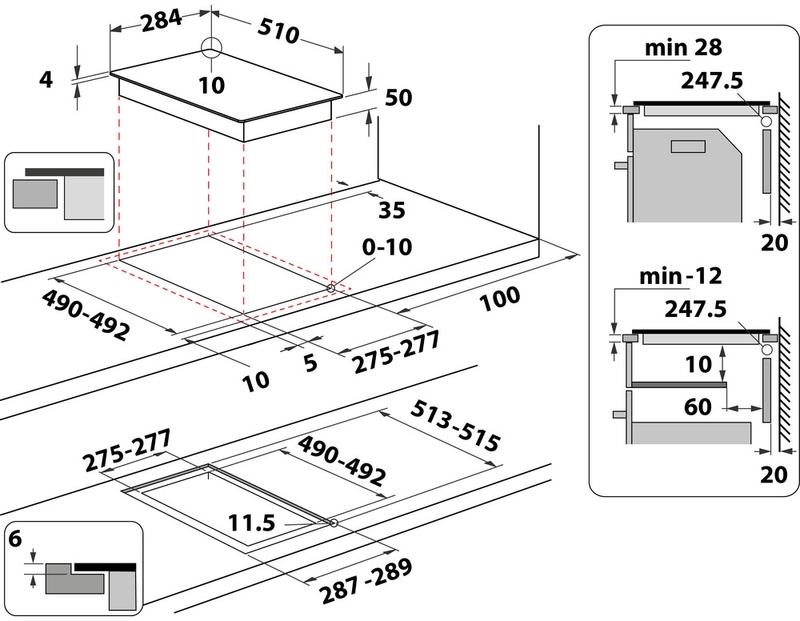 - Ausschnittmaße (BxT): 275 x 490 mm