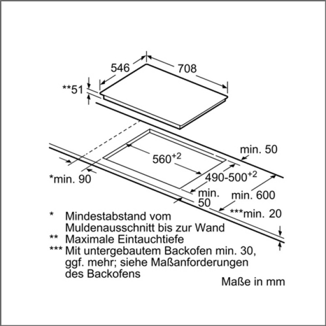 • Einbaumaße: 560 mm x 490 - 500 mm