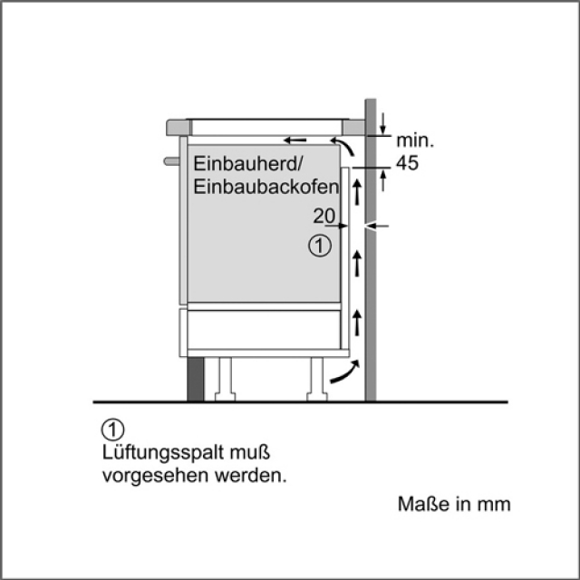 • Min. Arbeitsplattenstärke über Wärmegerät: 30 mm