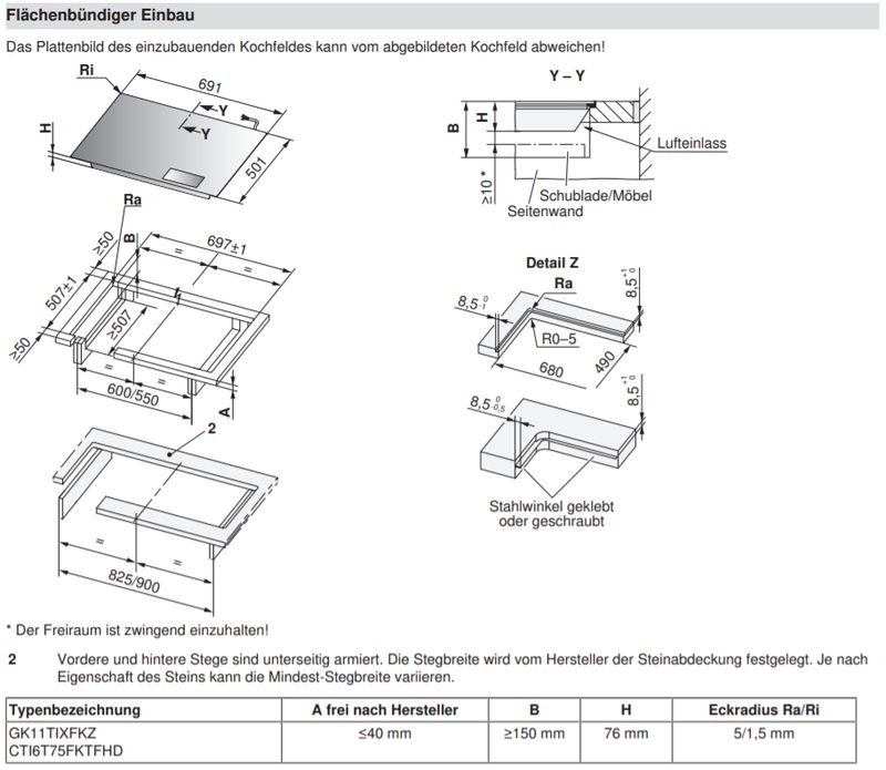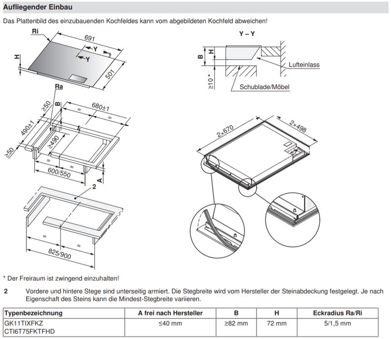 Einige Induktionskochfelder verfügen über ein neues und innovatives Gerätekonzept. Die aktuellen Ausführungen «Facettenschliff» und «flächenbündig werden durch das neue DualDesign abgelöst. Dank dieser neuen Designvariante kann dasselbe Kochfeld in Zukunft «flächenbündig» wie auch «aufgesetzt» eingebaut werden. Die aufgesetzte Version verfügt über eine Glaskante, welche für ein filigranes Erscheinungsbild sorgt und sehr robust ist. Die flächenbündige Version hingegen zeichnet sich dadurch aus, dass sie sich in jede Arbeitsplatte integrieren lässt und diese nicht unterbricht. Die Ausschnittmasse bleiben dabei unverändert.