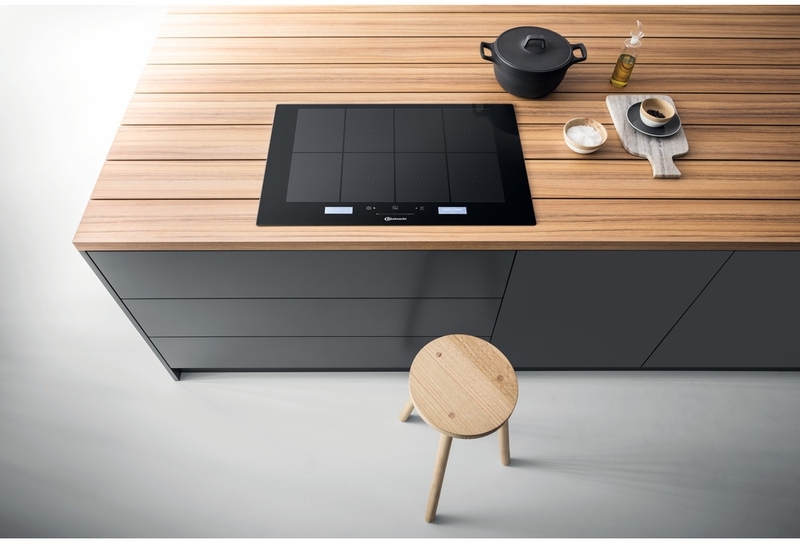 - 8 elektronisch geregelte Induktions-Kochzonen, die gleichzeitig genutzt werden können, mit Schmelzstufe und Turbostufe