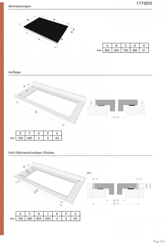 - Planungshinweis: Planen Sie unter dem Kochfeld mind. 2 cm Luftraum zur Belüftung ein und sorgen Sie für ausreichend Raum zur Luftzirkulation (siehe Angaben im Verkaufshandbuch). Keinesfalls darf unter dem Kochfeld ein Schutzblech oder -boden eingesetzt werden.