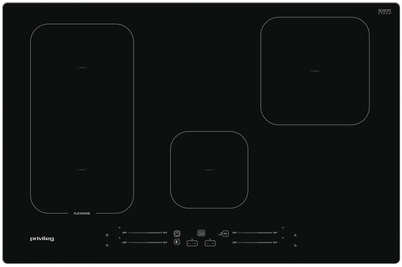 - 4 elektronisch geregelte Induktions-Kochzonen, mit Turbostufe, davon eine Flexizone