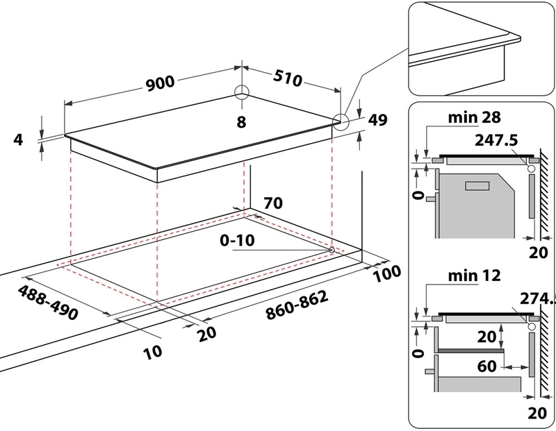 - Ausschnittmaße (B x T): 860 x 490 mm