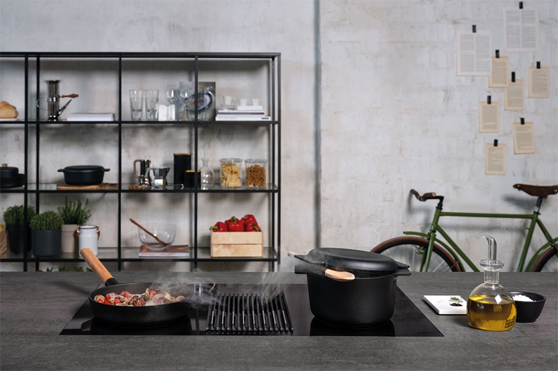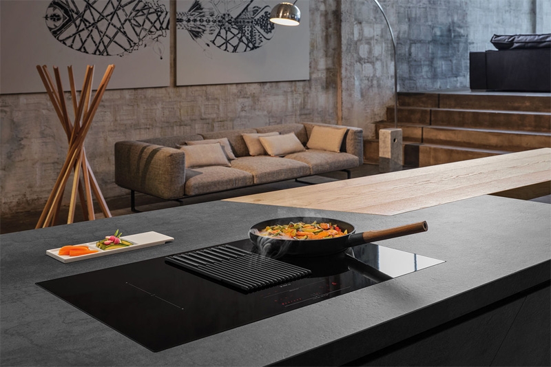 integrierter Kochfeldabzug mit Abluftbetrieb
