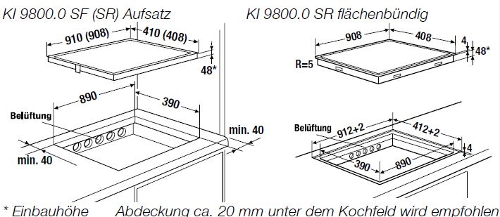 Bei allen Induktions-Kochzonen ist eine Topferkennung/Topfgrößenerkennung integriert: Sensoren ermitteln die Größe des Kochgeschirrs und schalten so beim Aufsetzen eines Topfes den Induktions-Heizkreis ein.