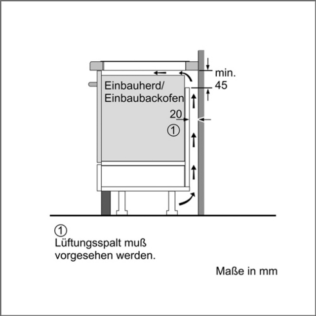 • Min. Arbeitsplattenstärke über Wärmegerät: 30 mm