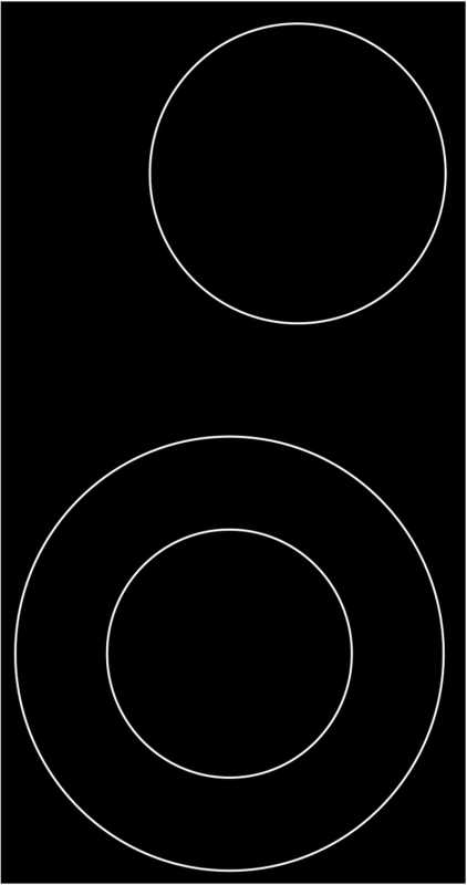 - Hinten links: 14,5/25 cm Ø, 1000/1800 Watt