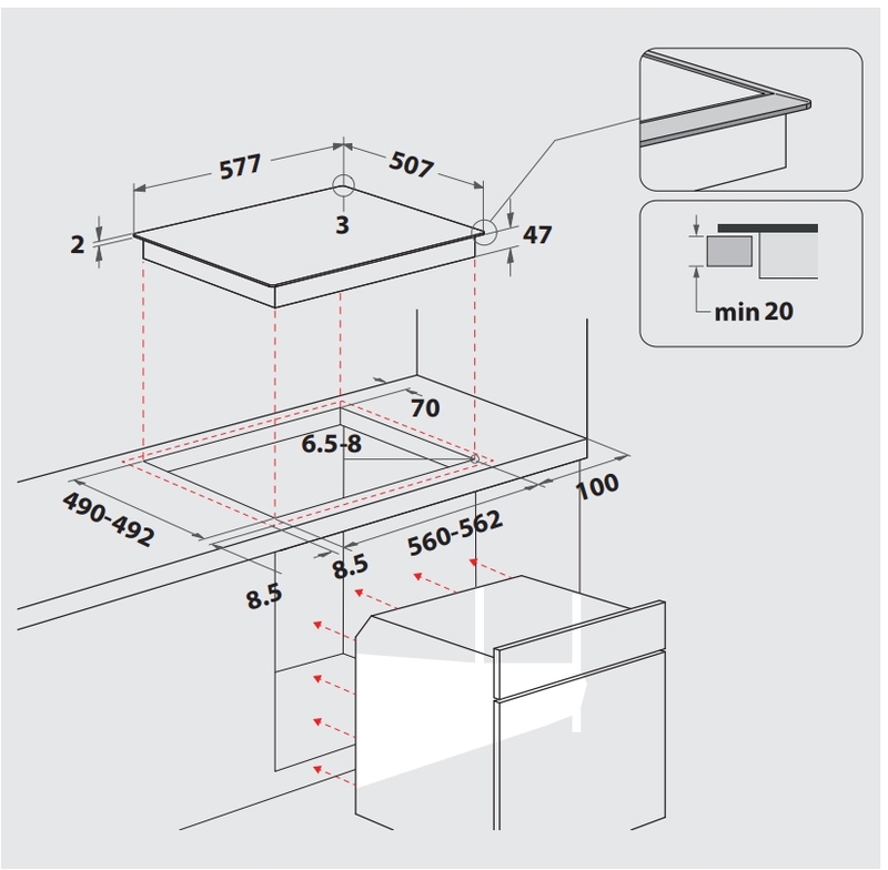 - Ausschnittmaße (BxT): 560x490 mm