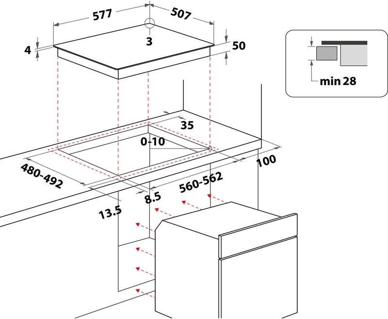- Ausschnittmaße (B x T): 560 x 480 mm