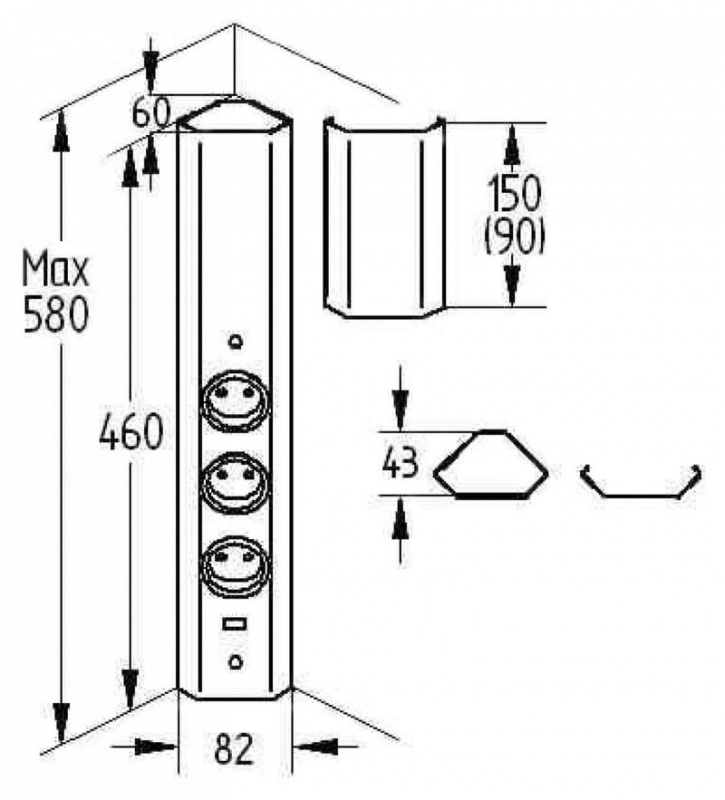 460–580 x 82 x 60 mm (H x B x T)
