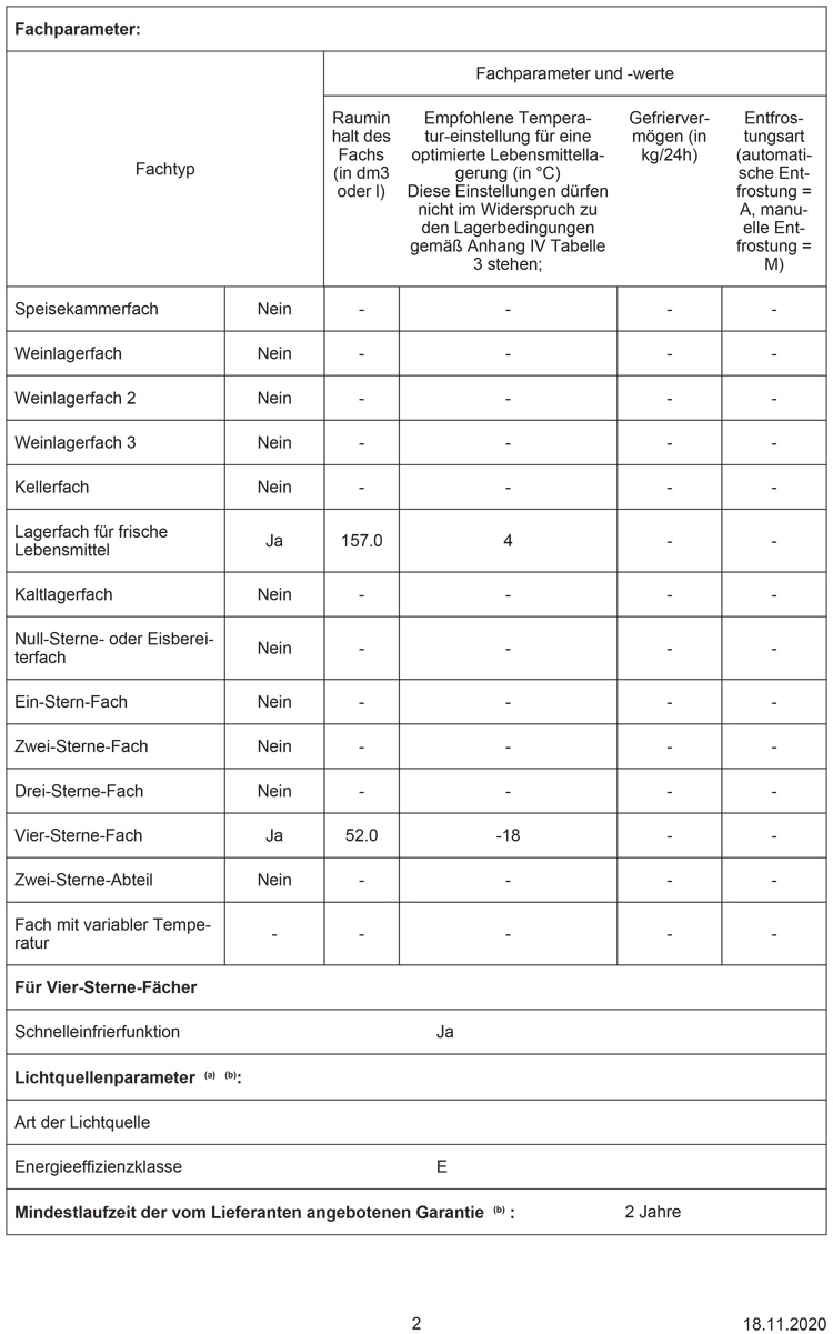 - ****-Gefrierraum: 52 l Nutzinhalt