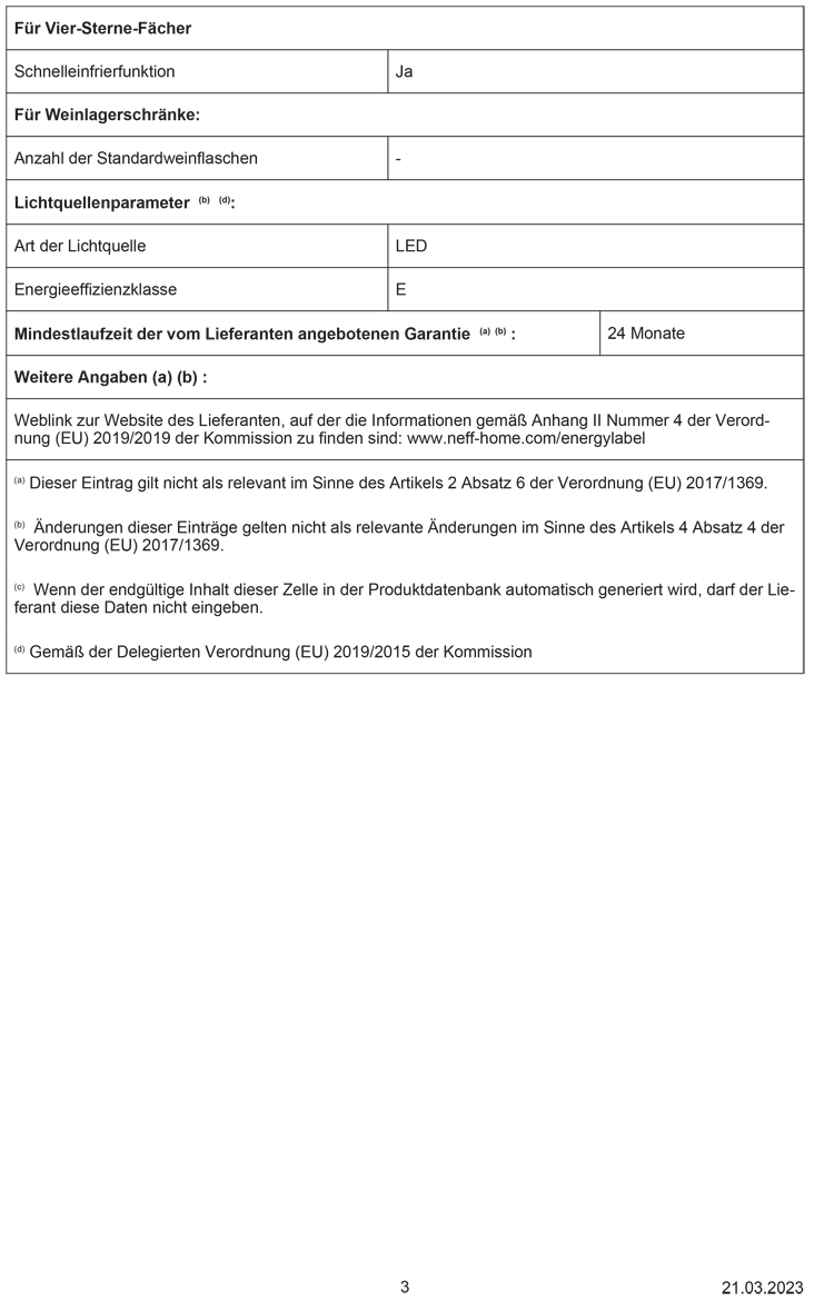 Nutzinhalt Tiefkühlfächer: 76 Liter