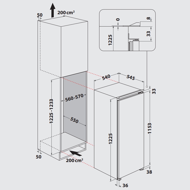 - Maße (HxBxT): 1225x540x545 mm