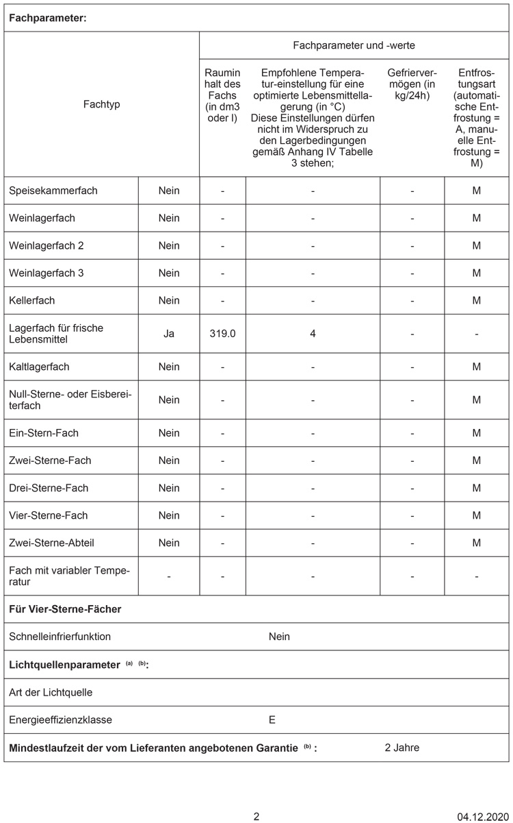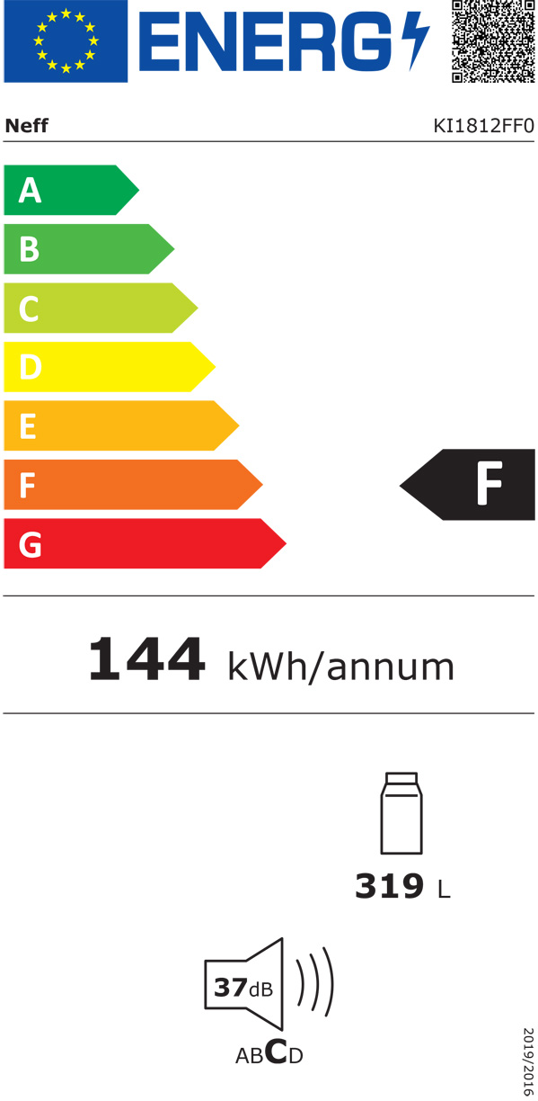 • Energie-Effizienz-Klasse: F auf einer Skala von A (höchste Effizienz) bis G (geringste Effizienz)