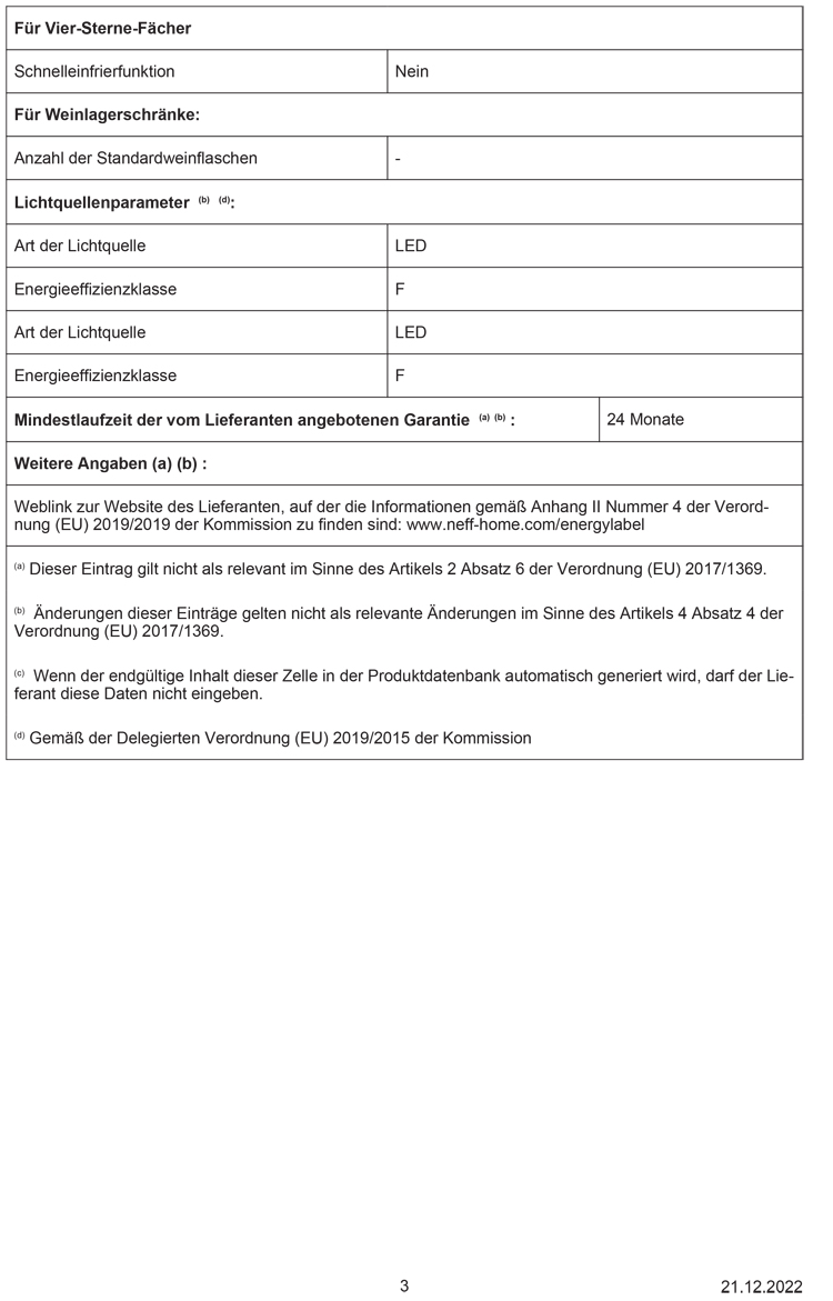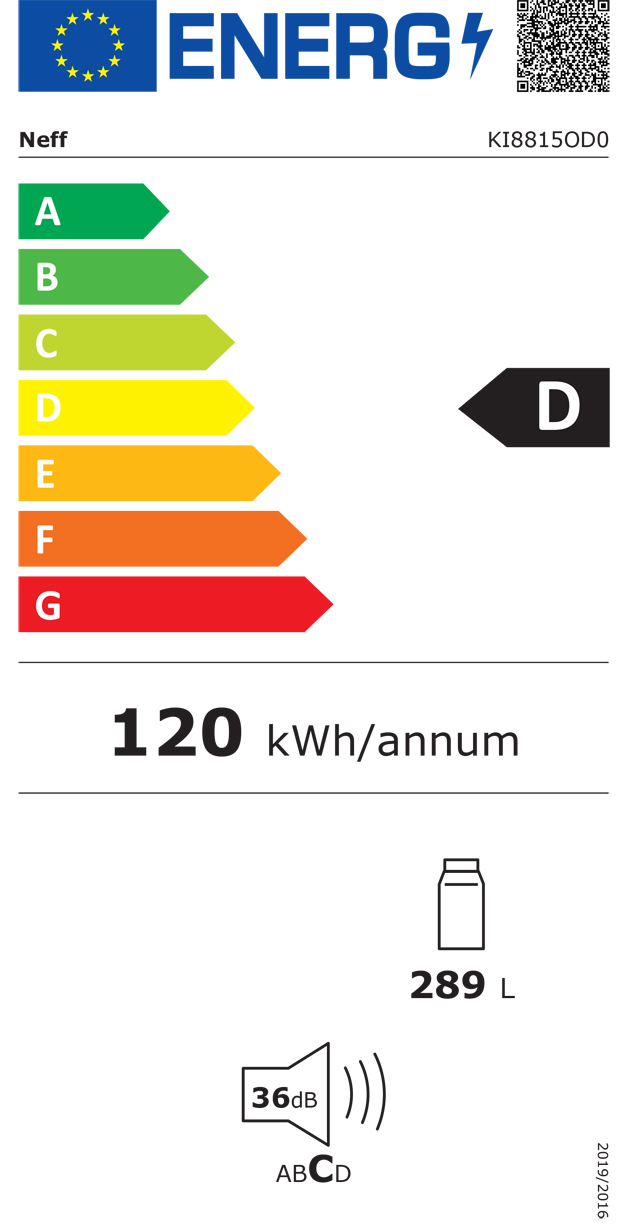 • Energie-Effizienz-Klasse: D auf einer Skala von A (höchste Effizienz) bis G (geringste Effizienz)