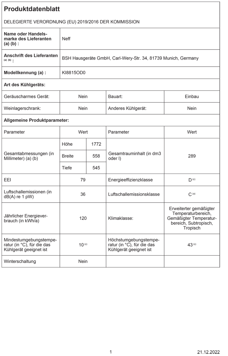 Neff KI8815OD0 N90, Einbau-Kühl-Schrank