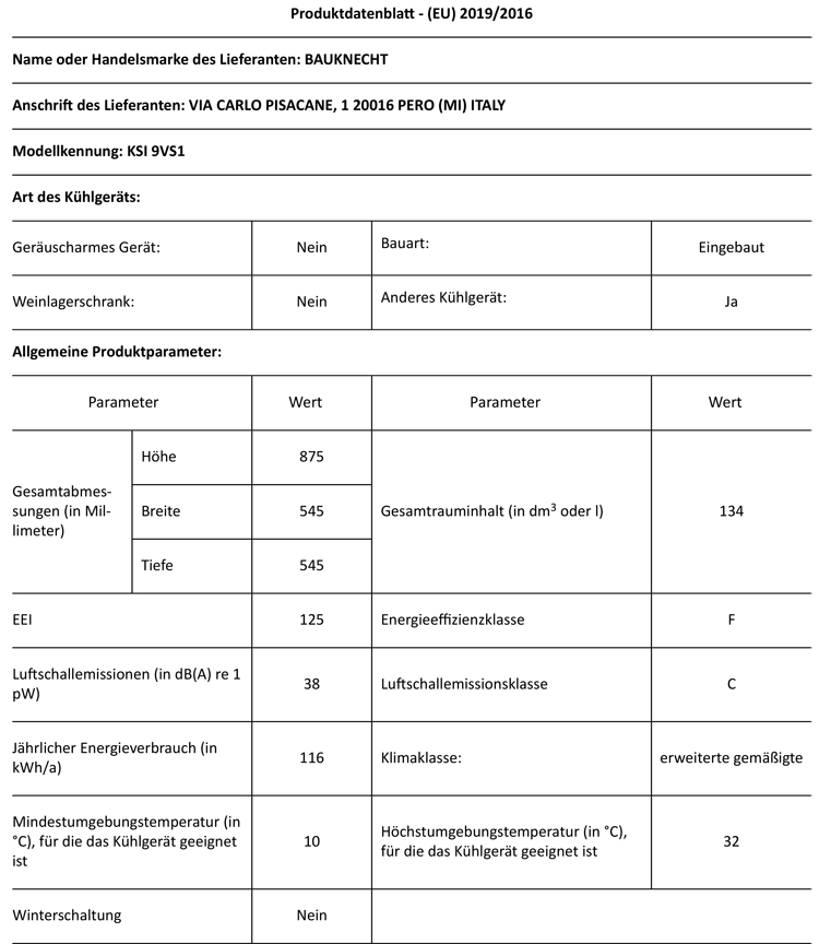 - Energieverbrauch: 116 kWh/Jahr