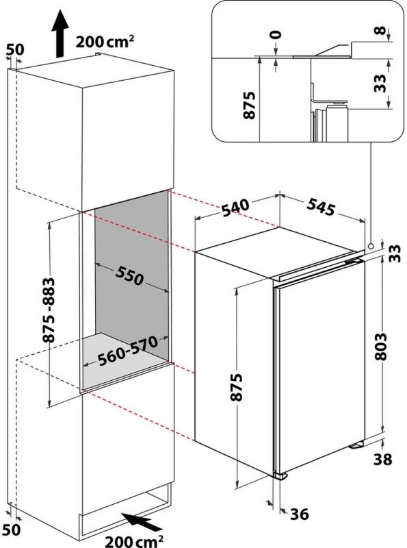 - Gerätemaße (HxBxT): 875x540x545 mm