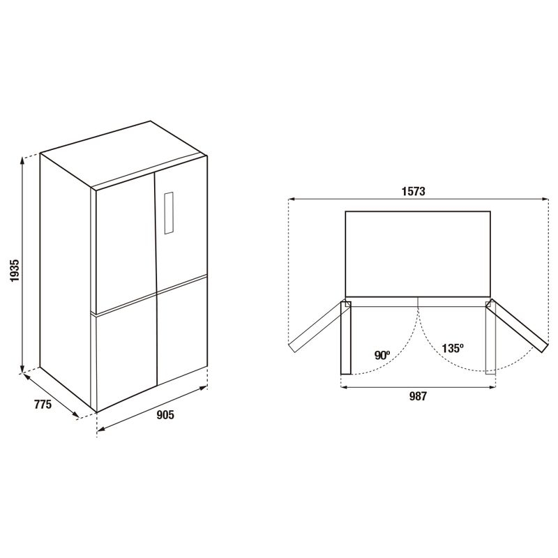 • Gerätemaße B x H x T ca. 905 x 1.935 x 775 mm