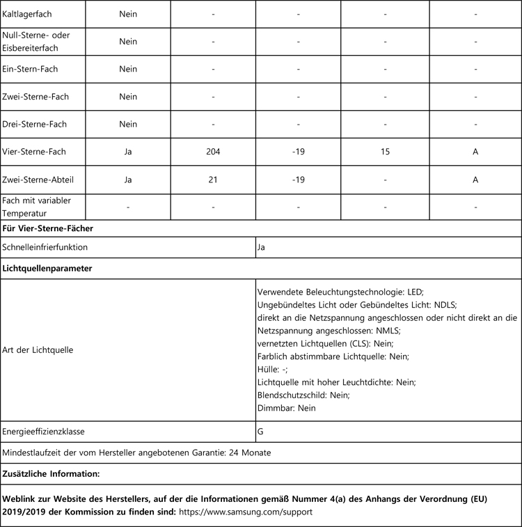 • Energieeffizienzklasse: E auf einer Skala von A (höchste Effizienz) bis G (geringste Effizienz)